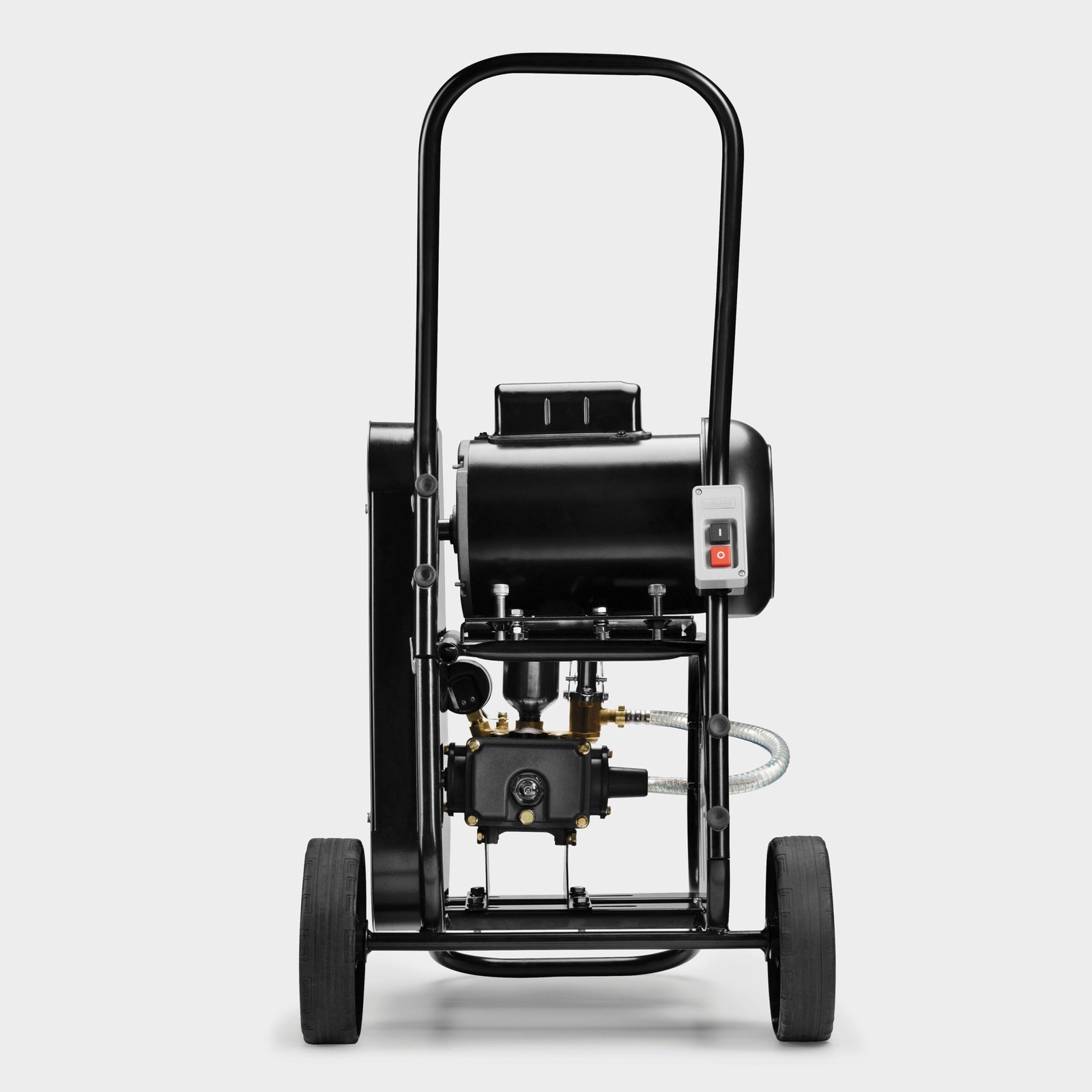 O motor monofásico de 1 CV com certificação IP 55 assegura proteção contra choques elétricos, água e poeira, tornando o equipamento ideal para lava-rápidos e ambientes agrícolas.